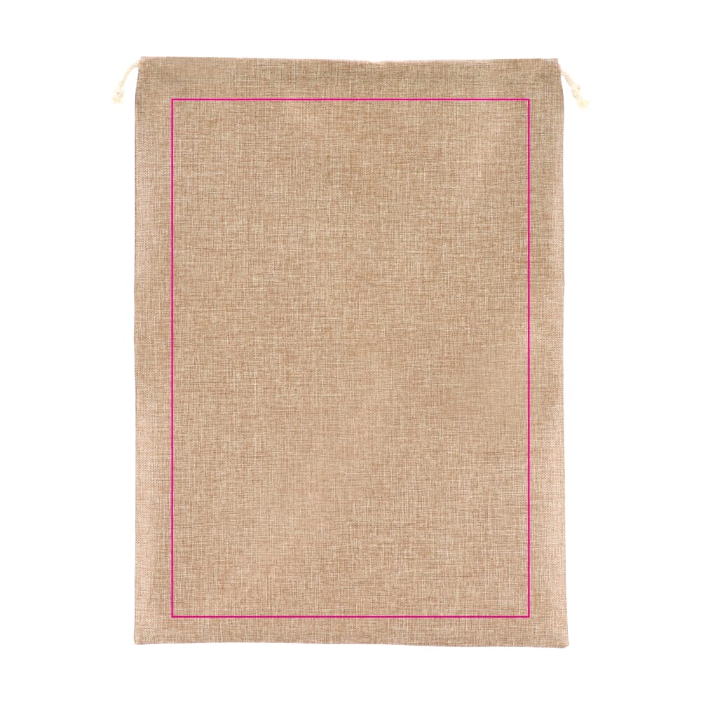 Verpak je cadeautjes in deze ruime jute-stijl geschenktas met koord. De stevige en herbruikbare tas is perfect voor het opbergen en vervoeren van grote cadeaus en voegt een rustieke, feestelijke charme toe aan je kerstfeestjes.