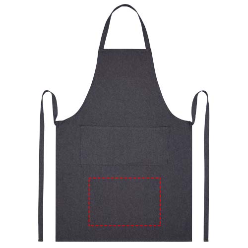 Het Nima schort is gemaakt van 70% gerecycled katoen en 30% gerecycled polyester met een gewicht van 320 g/m², waardoor het dik, stevig en comfortabel is om te dragen. Het beschikt over 2 aangrenzende zakken (elk 22 x 20 cm) en een striksluiting van 1 meter.