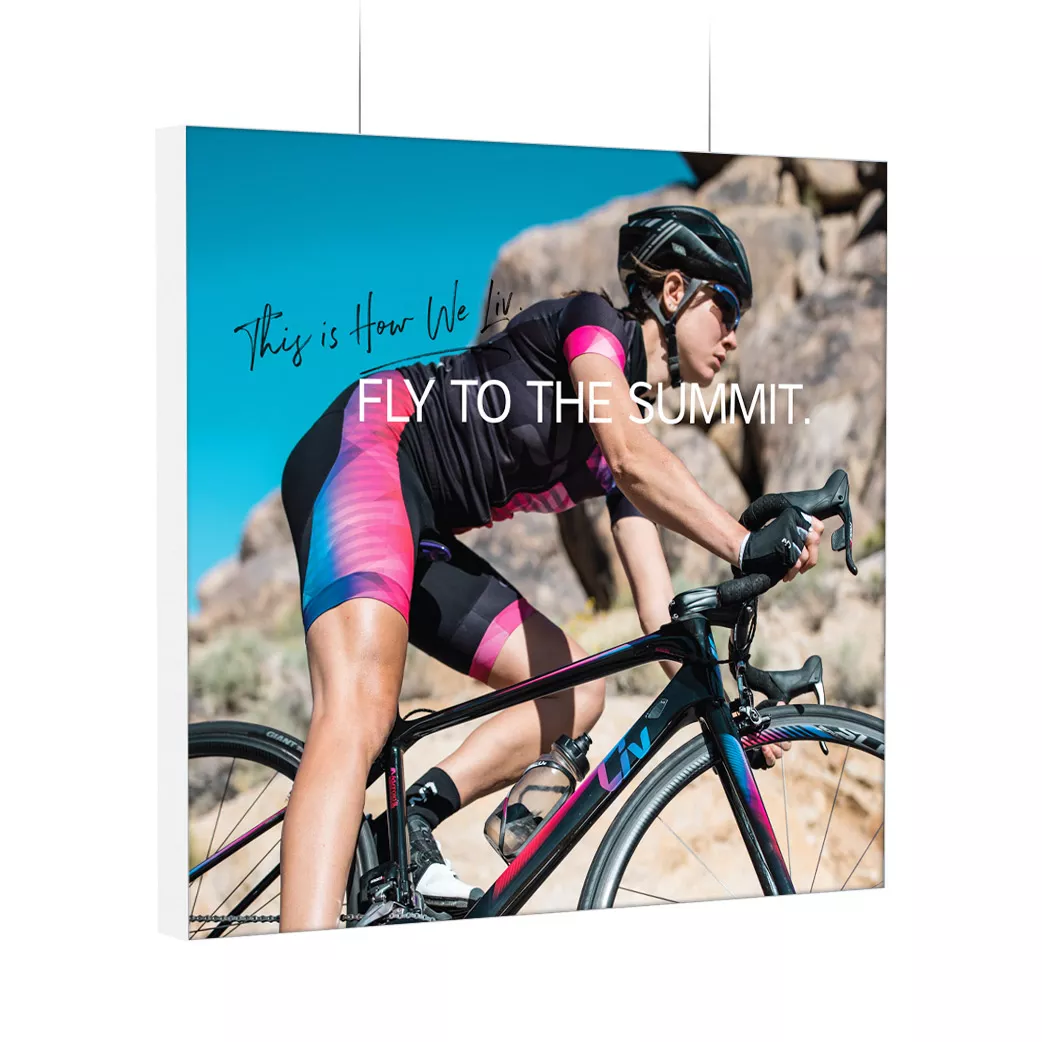 Bij de hangende witte textielframes heeft u de keuze uit drie framediktes: 25, 27 en 44mm, waarbij het 44 mm profiel kan worden voorzien van maar liefst twee doeken, dus uw reclame/foto is op beide zijden zichtbaar.