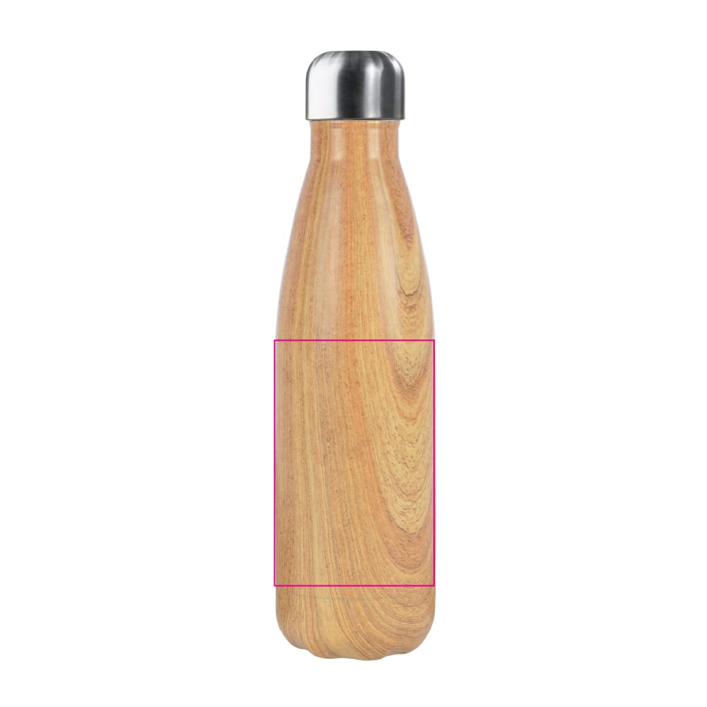 Dubbelwandig vacuüm geïsoleerde thermofles met een hout-look uitstraling. De 100% lekvrije fles wordt geleverd in een mooie geschenkverpakking. Door het vacuüm tussen de wanden blijven dranken langer op temperatuur. Dranken blijven tenminste 12 uur warm of 24 uur koud.